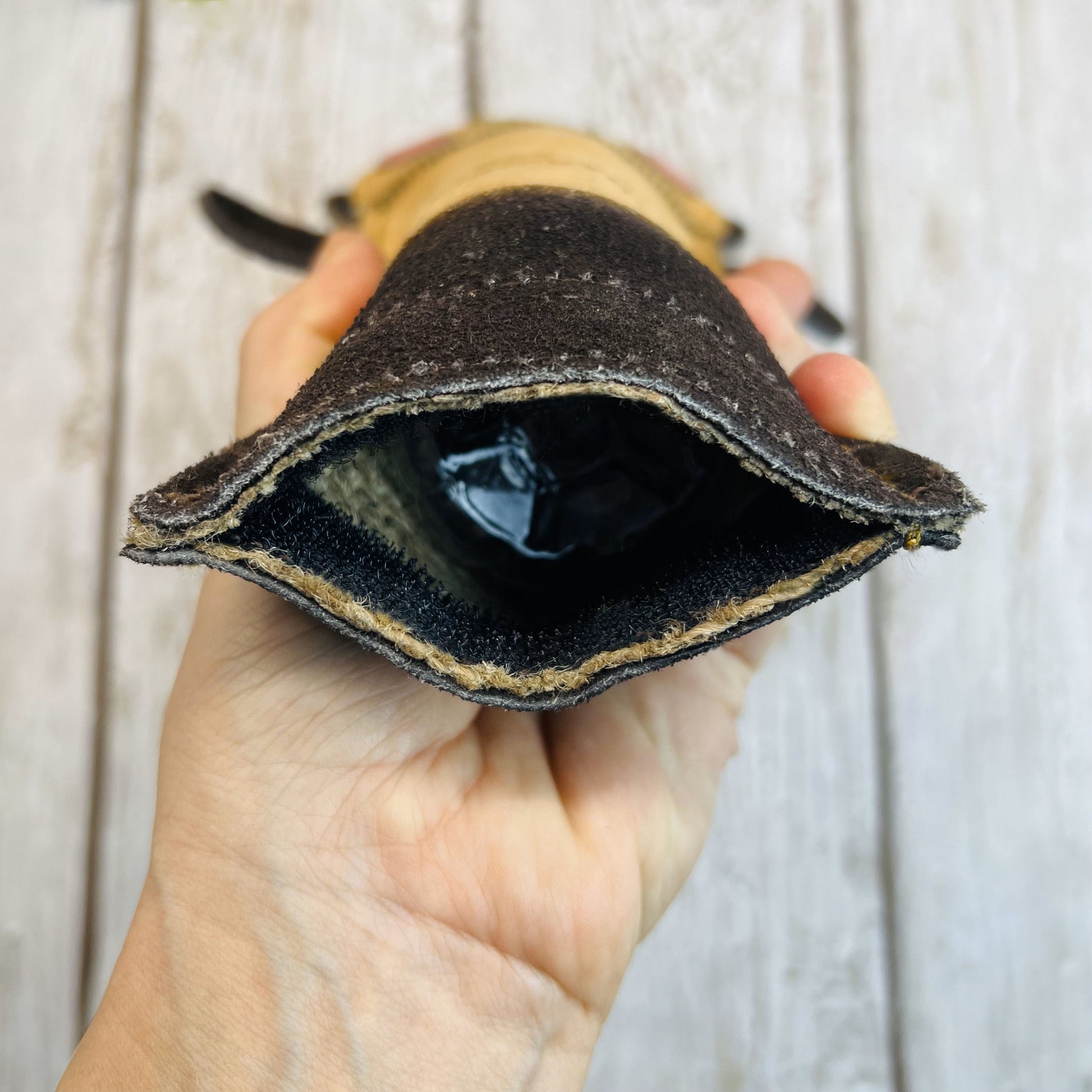 Materiali: camoscio, juta, fibra di cocco + bottiglietta